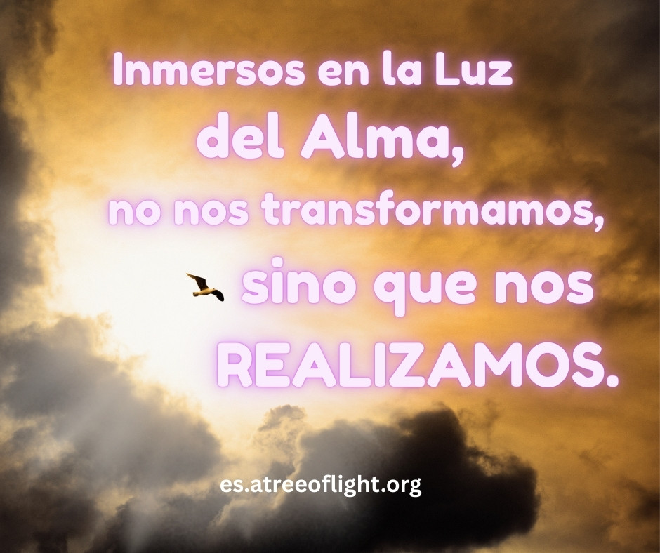 “El alma es un vórtice de luz que opera bajo principios similares a la luz física, pero en un grado de conciencia más sutil. Vibrar con una determinada banda de frecuencias es estar en su esfera de resonancia. Esto ocurre por un acto de la voluntad de trascender los límites de la dimensión material y sintonizar con la espiritual.” 026d-F-Sp