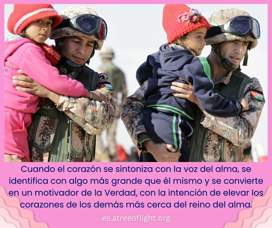 Cuando el corazón se sintoniza con la voz del alma, se identifica con algo más grande que él mismo y se convierte en un motivador de la Verdad, con la intención de elevar los corazones de los demás más cerca del reino del alma. 44ba-F-Sp