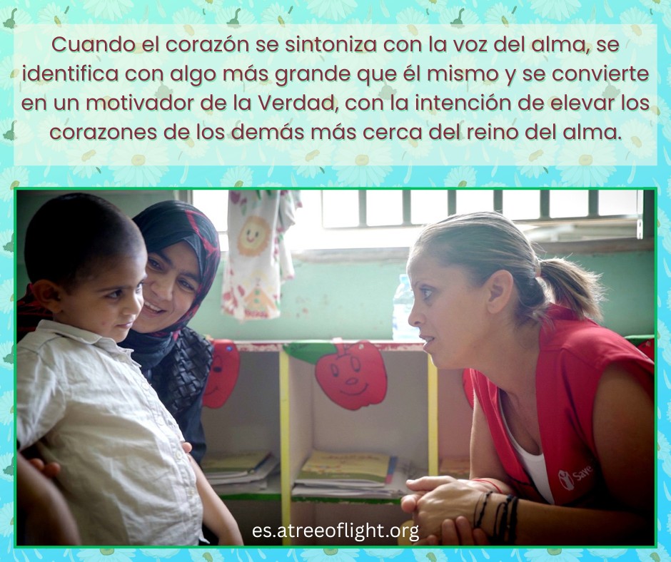 Cuando el corazón se sintoniza con la voz del alma, se identifica con algo más grande que él mismo y se convierte en un motivador de la Verdad, con la intención de elevar los corazones de los demás más cerca del reino del alma. 447a-F-Sp