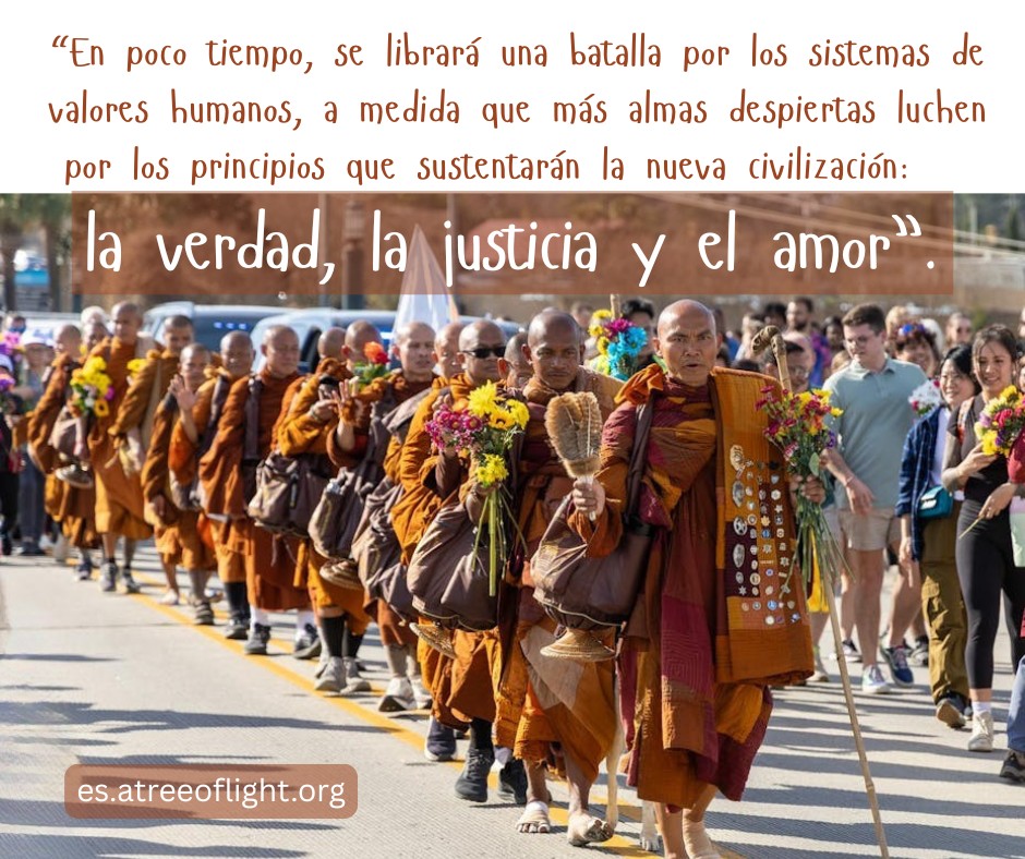 “En poco tiempo, se librará una batalla por los sistemas de valores humanos, a medida que más almas despiertas luchen por los principios que sustentarán la nueva civilización: la verdad, la justicia y el amor”. 448-F-Sp
