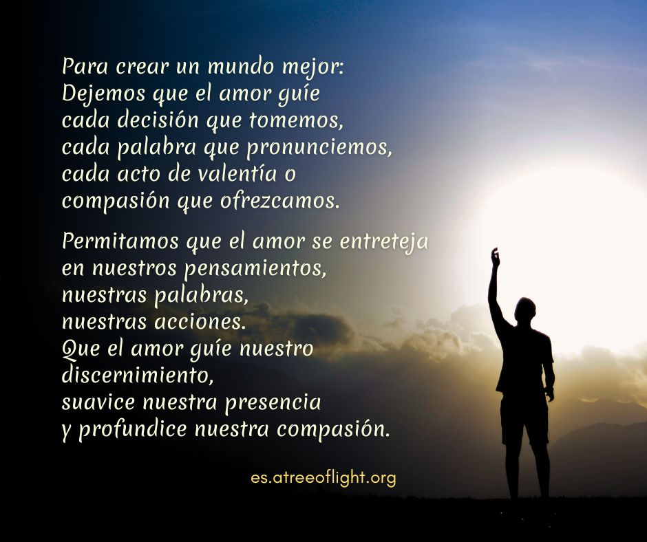 El espíritu del Amor está activo en el mundo dondequiera que personas valientes estén creando una fuerza contraria a la oscuridad de la agresión, la codicia y el egoísmo. AAS-I-027-F-Sp